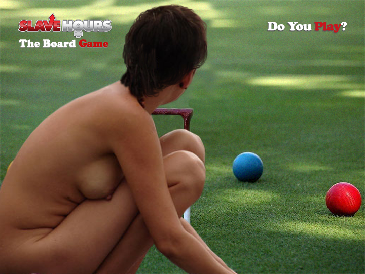 "Naked outdoors" task. As winner of the game you become the "Taskmaster" and your opponent becomes your "Slave" for the amount of "Slave Hours" you won during game play. Your "Slave" must follow your whims, wishes and commands until all of the "Slave Hours" time has been used up. A game of strip croquet just may become your second most popular sport.